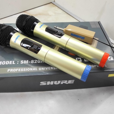 Model za govor, kakraoke i pevanje. SM 820A Vokalni sistem u kompletu sa 2 kvaliteta vokalni radio mikrofoni za govor i pevanje. Jasan zvuk, kvalitetna reprodukcija tembra i dubinu glasa.