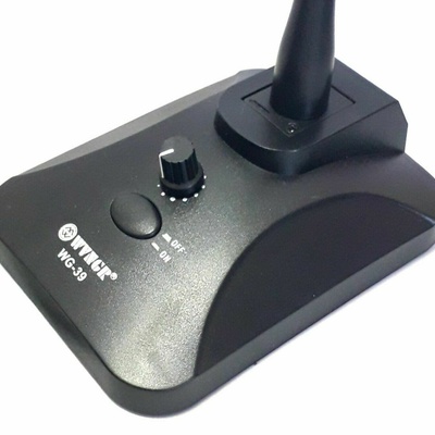 Potpuno novi profesionalni mikrofon sa kablom i priključkom za lako povezivanje na pojačalo ili čak na miksetu. Model WG-39. Mikrofon idealan za konferencije, koji se široko koristi jer mu praktičnost omogućava uključivanje i isključivanje mikrofona direktno sa baze i podešavanje njegovog ugla s obzirom na njegovu fleksibilnost. Opremljen kapsulom kondenzatora kako bi se osigurala visoka osetljivost. Tehničke specifikacije: Frekvencijski odziv: 100Hz - 16000Hz Impedansa: 200 oma visoka osetljivost: -40dB +/- 2 Napajanje za dugme za uključivanje i isključivanje mikrofona: 2 AAA baterije (nisu uključene u paket)