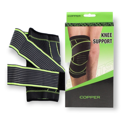 KARAKTERISTIKE - Materijal: najlon, spandex, latex - Kompresijska podrška za koleno - Ubrzava cirkulaciju krvi i dotok kiseonika u krv - Smanjuje bolove i umor u području kolena - Jednostavno nameštanje - Udoban i rastegljiv - Potpuno prilagođavanje pomoću trake - Jednostavno održavanje - Boja: crno-zelena