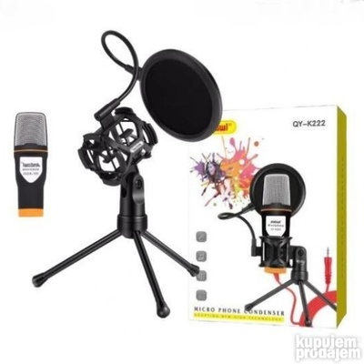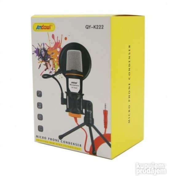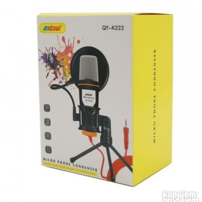 Odličan kondenzator Mikrofon QY-k222 od brenda Andowl sa 3,5 mm utikač žični kondenzator za mikrofon sa postoljem.